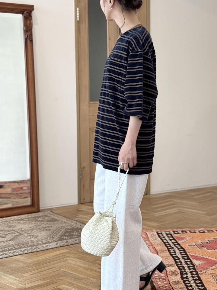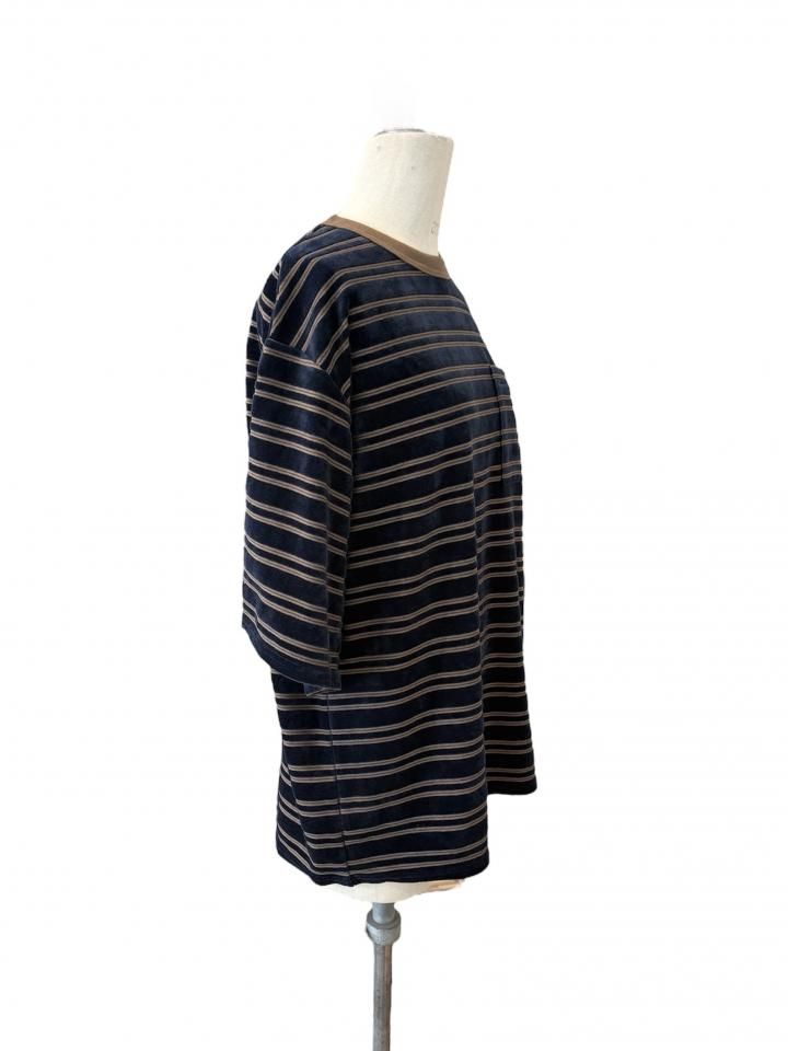 肘が隠れるくらいの五分袖がまだ暑い時期にも秋ムードを感じられる一枚です。