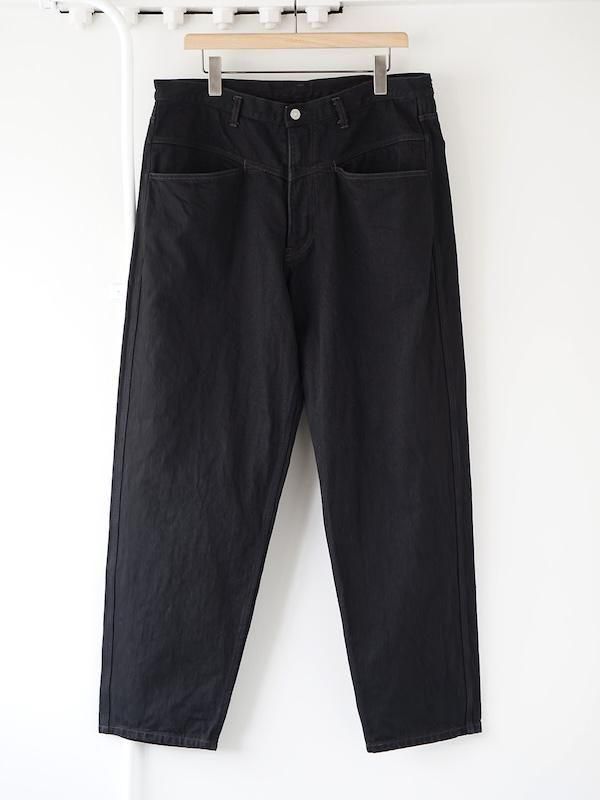 COMOLI ブラックデニム テーパードパンツ