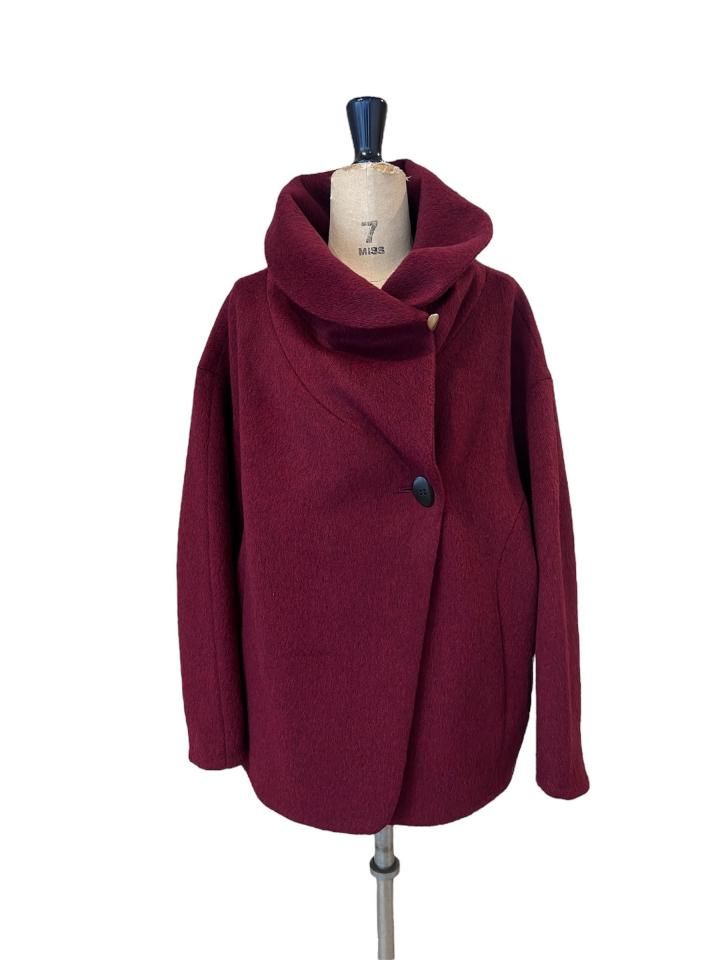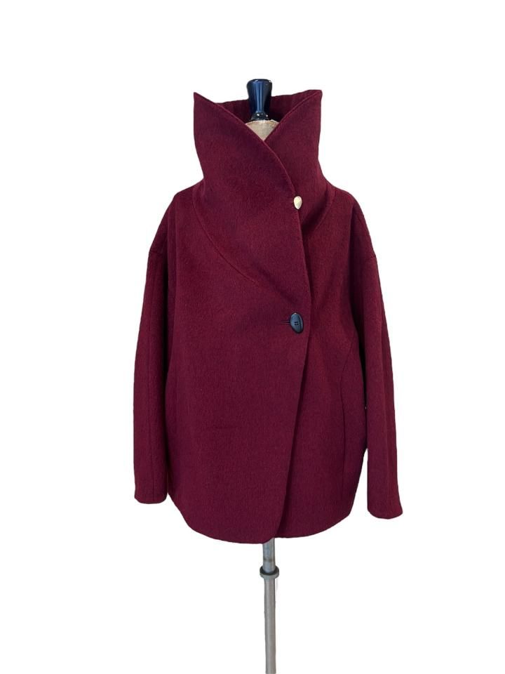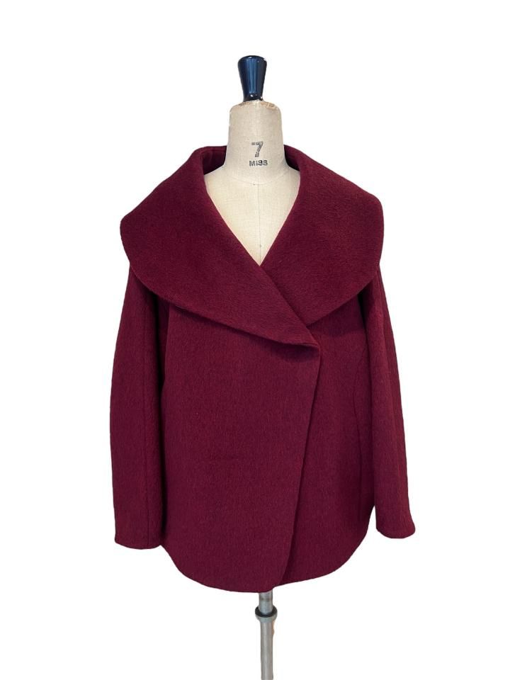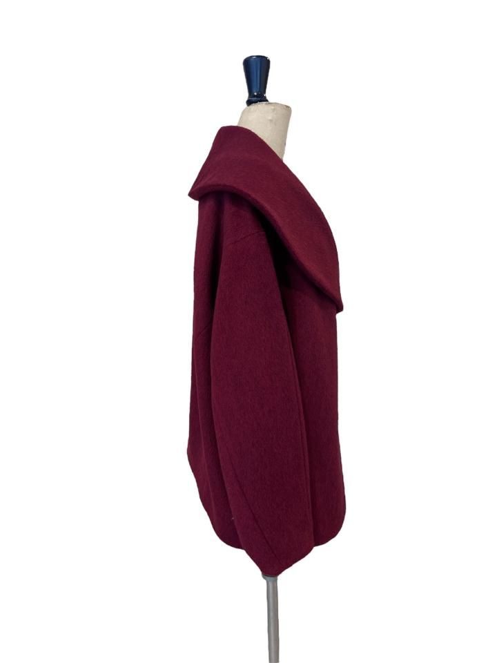 大きな襟と丸みを帯びたフォルムがコンセプチュアルな印象のショートコート。