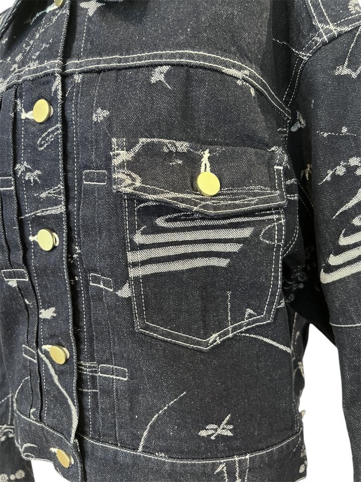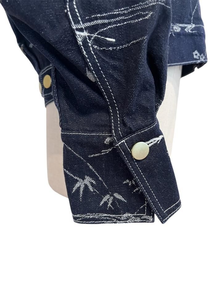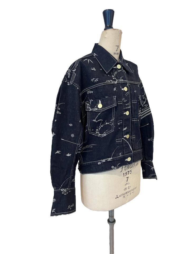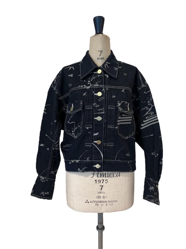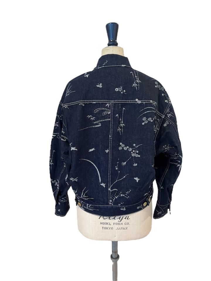 オリジナルの花鳥柄をジャガードで表現したデニムジャケット。