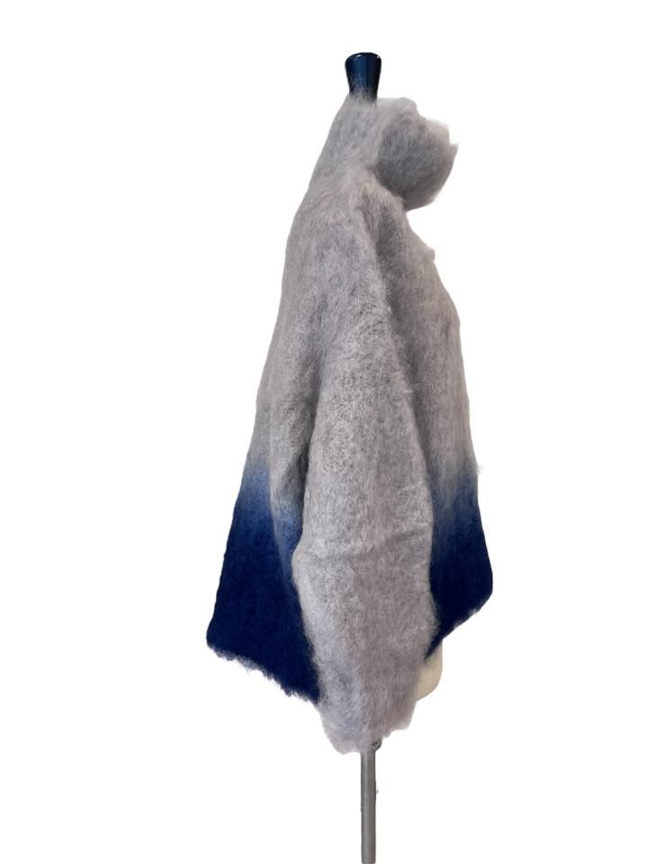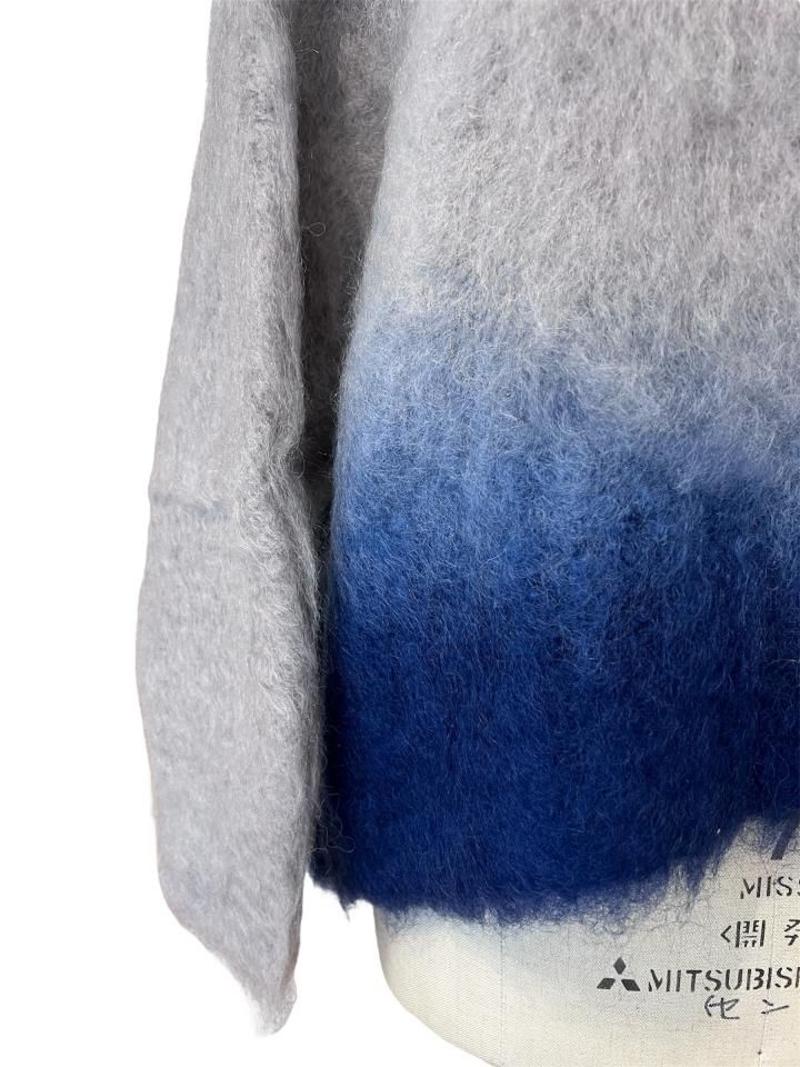 光沢感とハリのあるモヘア糸を使用し丸みのある袖のフォルムと