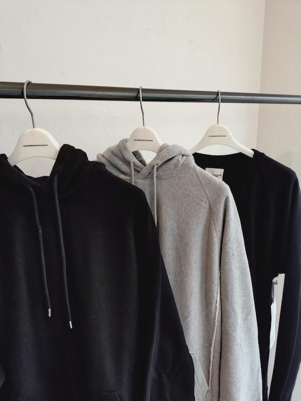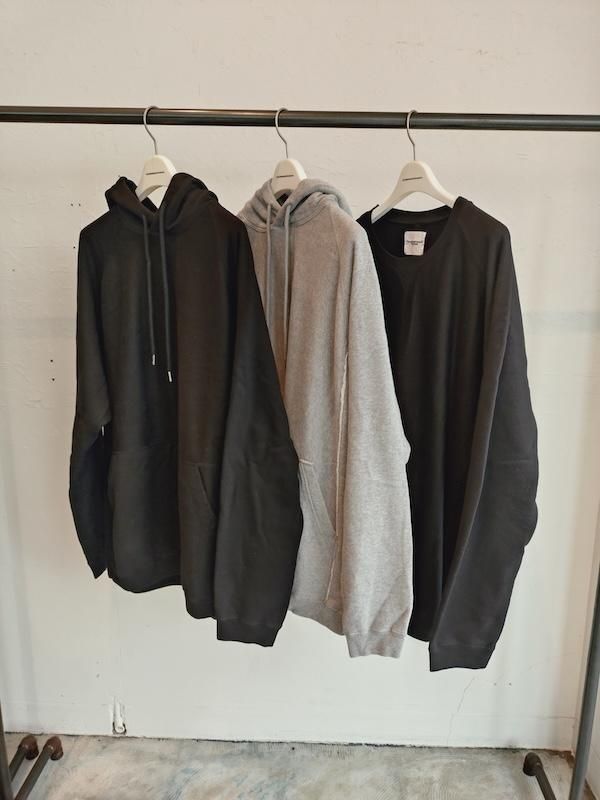 写真左側から2番目がオーバーサイズフーディー、ヘザーグレーとなります。