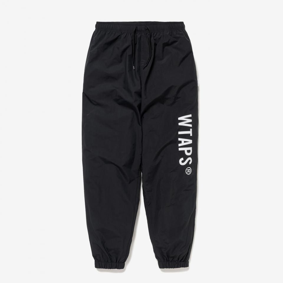 耐久防水を誇るPERTEX®のナイロンタッサー生地を使用したトラックパンツ。内側はリサイクル素材のメッシュを用いた総裏仕立て。フロント左太腿とバック右膝裏付近にプリントモチーフ。バック左膝裏付近とヒップポケット下にヒートトランスファープリントモチーフを配置。