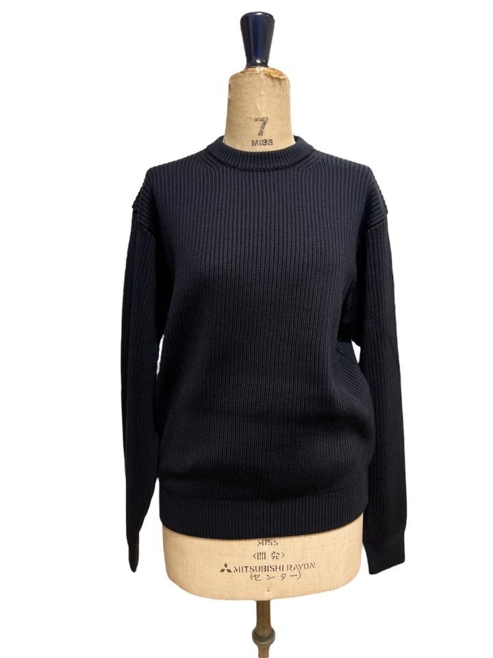 オーストラリア産の繊細なメリノウール原料を使用し防縮加工を施した糸で編み立てた畦ニットです。