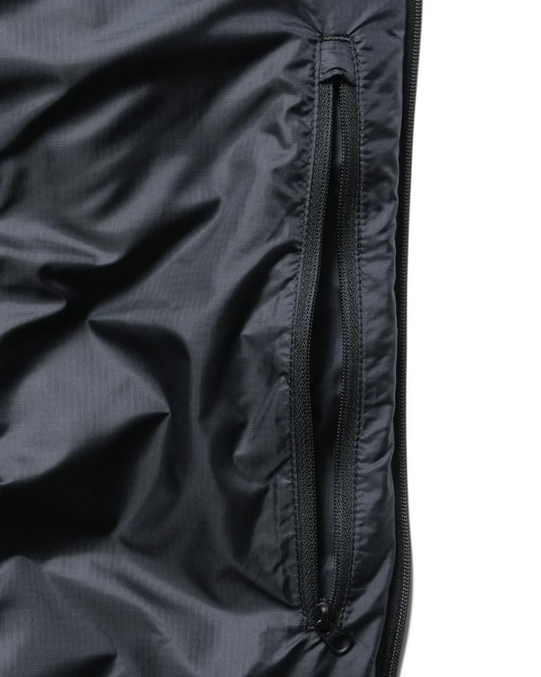 軽量で防水透湿性に優れた2層のリップストップ生地の内側に、環境に配慮した〈ALLIED〉社製の700フィルパワーダウンを封入した薄手のダウンジャケット。同素材のベストと同様に、胸ポケットは伸縮性に優れたマイクロリップストップ生地の切り替え仕様。アウターとしてはもちろん、真冬にはミッドレイヤーとしても活躍します。