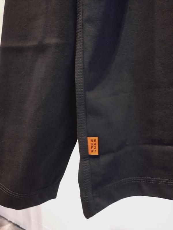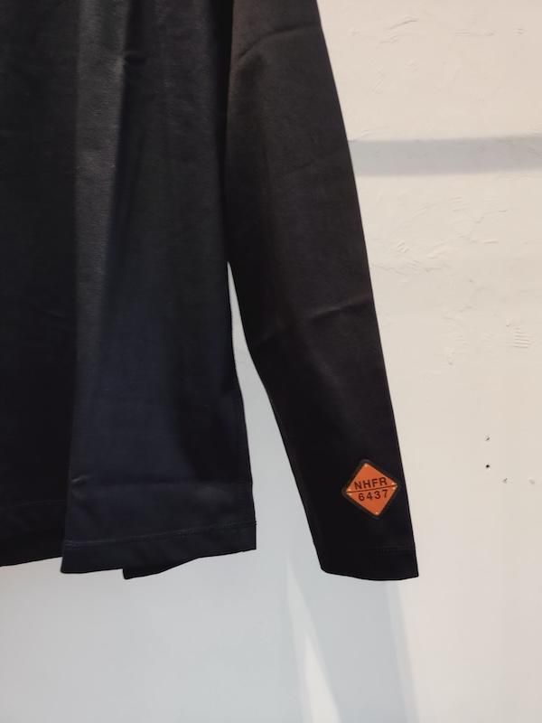 後襟にループ付き。ワークウエアに付けられるWARNINGタグから
